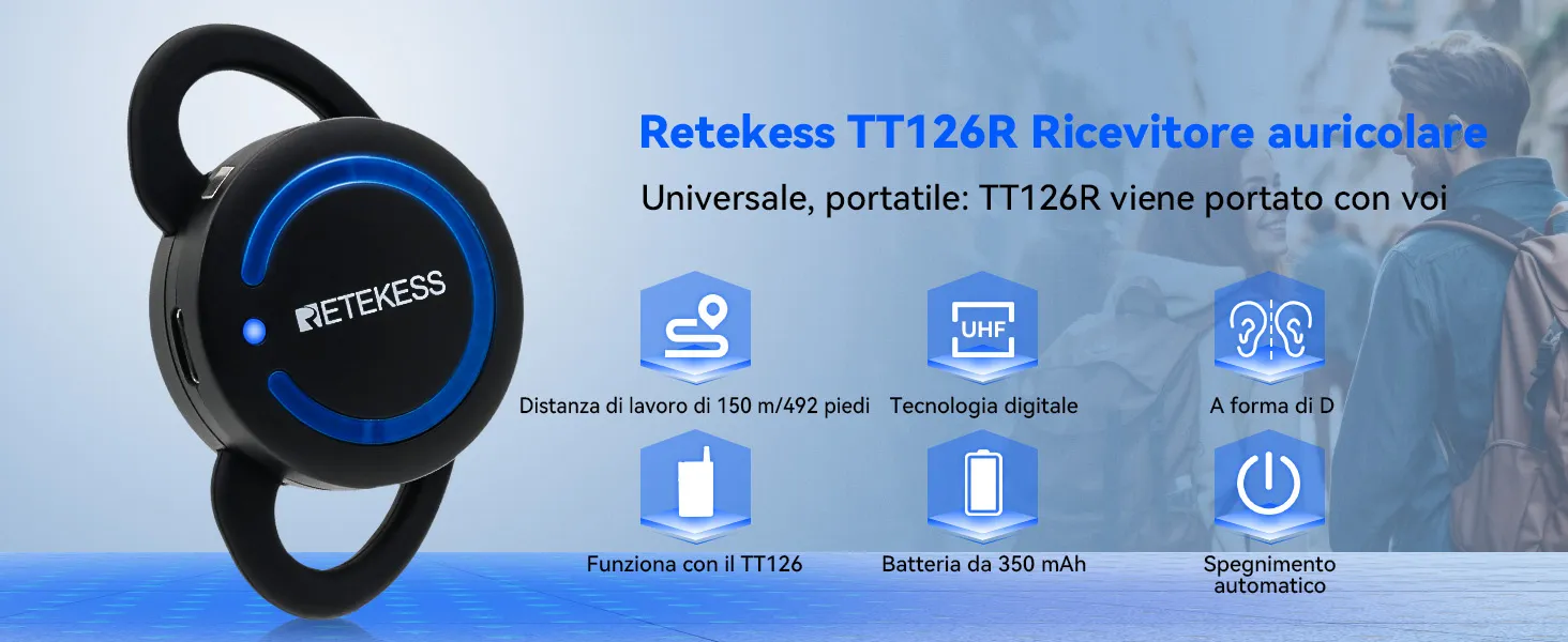 - Il ricevitore on-ear TT126R può ascoltare contemporaneamente sia il trasmettitore principale che quello secondario TT126.