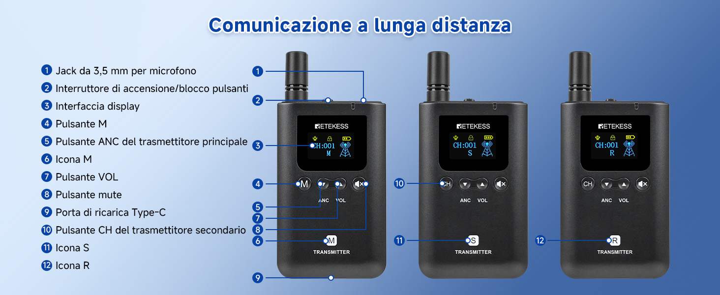Retekess TT129 S Trasmettitore Bidirezionale per Guida