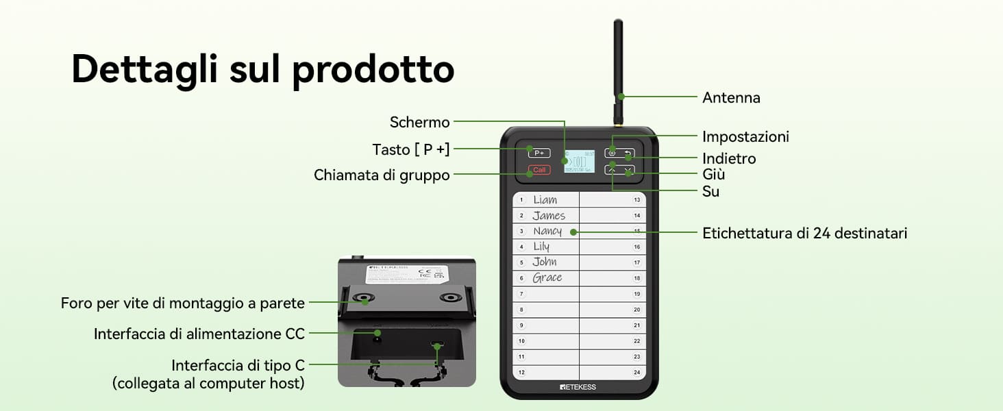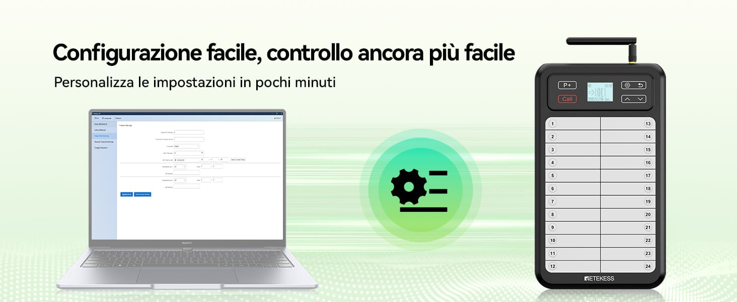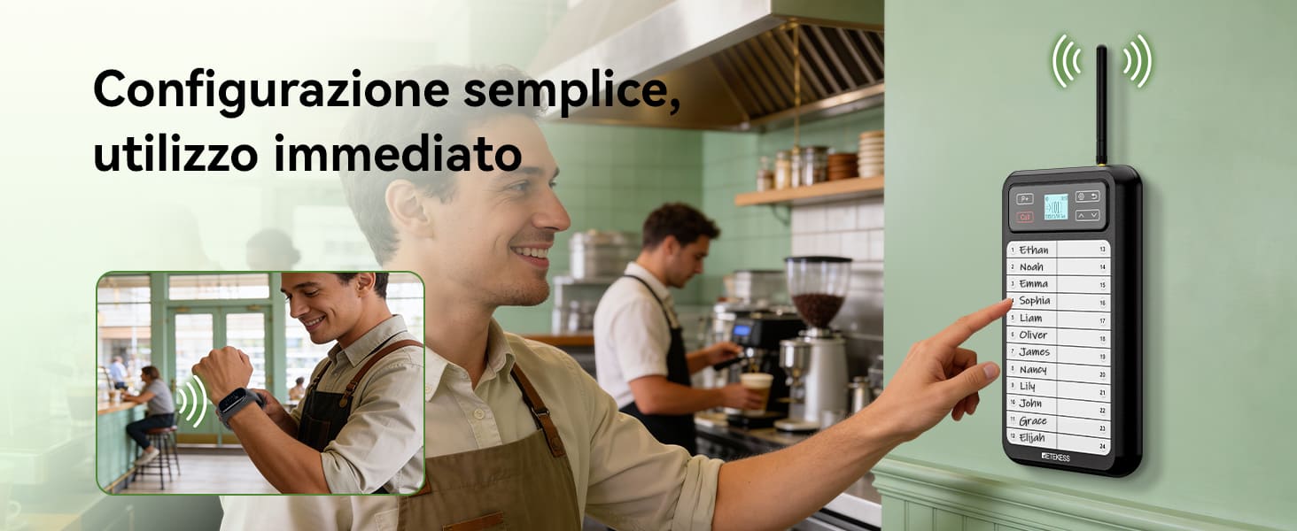 Sistema di Chiamata per Camerieri da Ristorante: Trasmettitore a Pannello Bianco TD037 e Ricevitore a Bracciale TD112