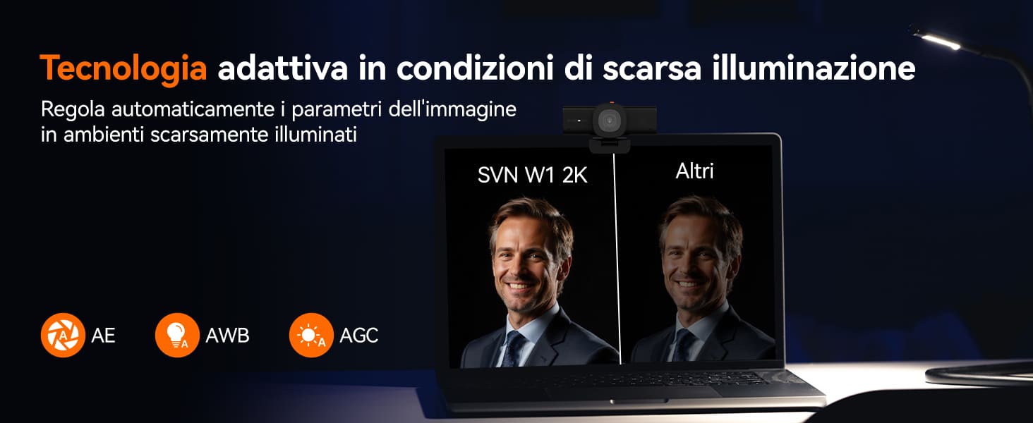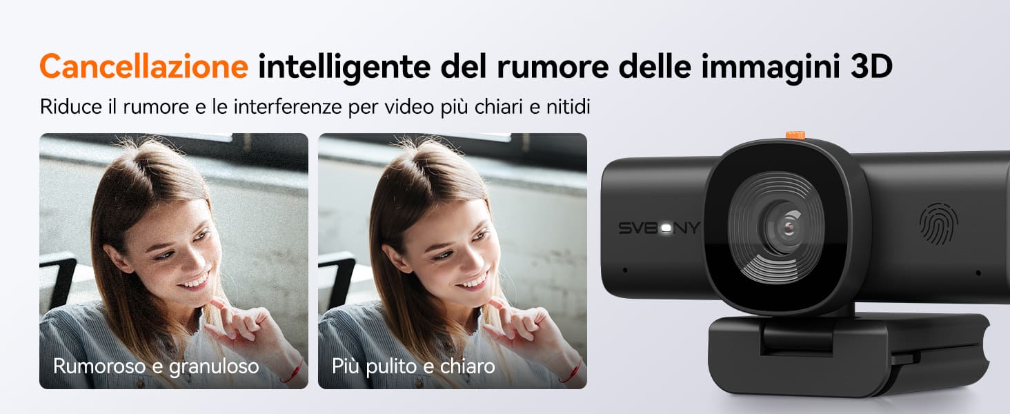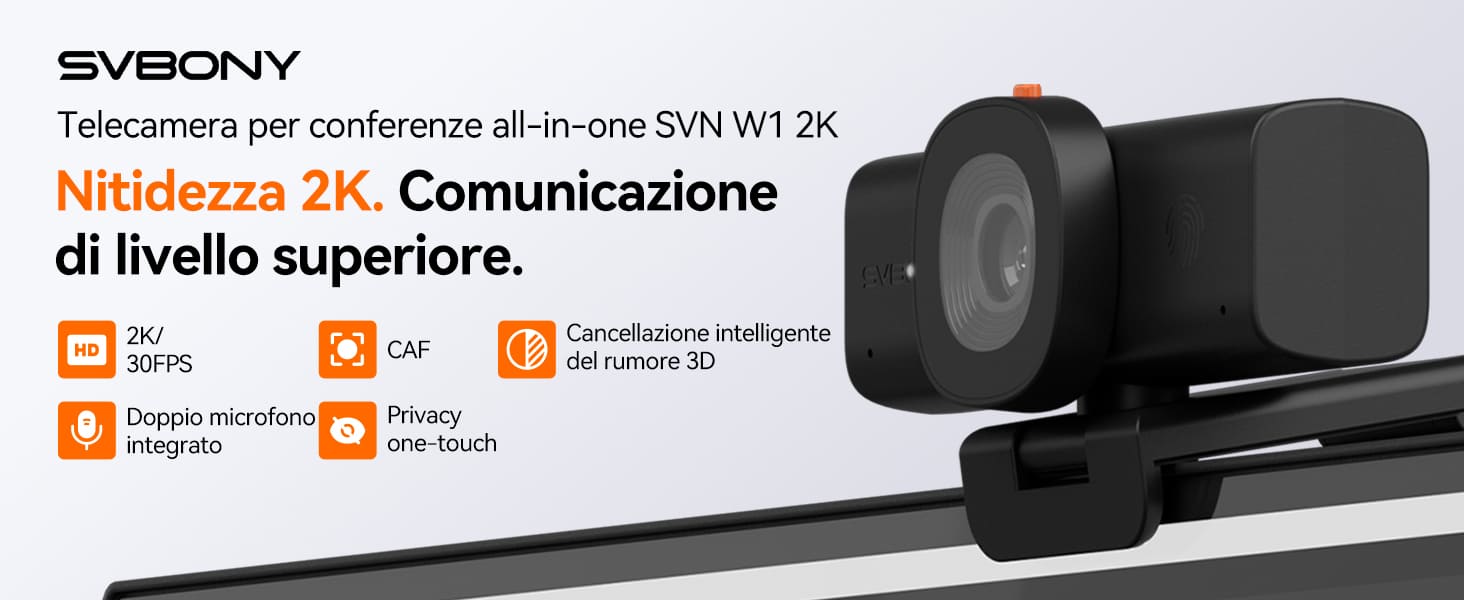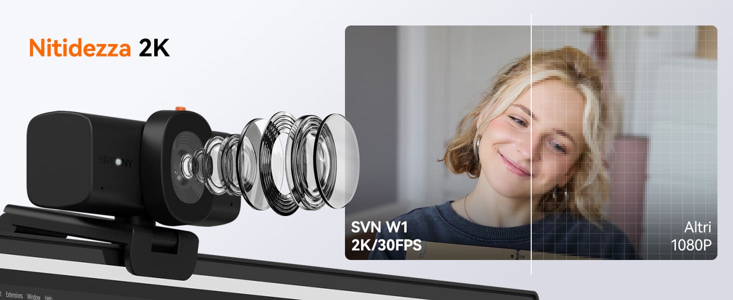SVN W1 Webcam 2K All-in-One per Videoconferenze con Doppio Microfono con Cancellazione del Rumore