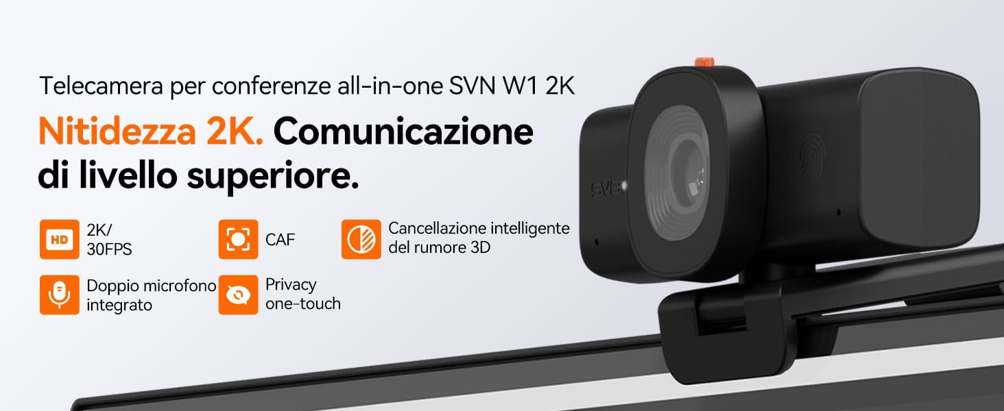 SVN W1 Webcam 2K All-in-One per Videoconferenze con Doppio Microfono con Cancellazione del Rumore